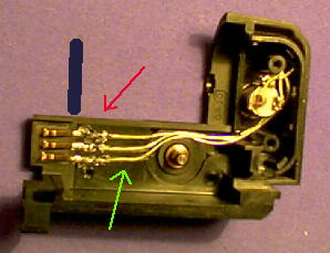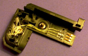 Das wars auch schon im Wesentlichen. Das Abdeckblech wird an den kritischen Stellen (Buchse, Kontakte) mit Klebeband isoliert und wieder montiert. Die Kontakte sollten jetzt genau auf die Kontaktflächen der Kamera treffen.